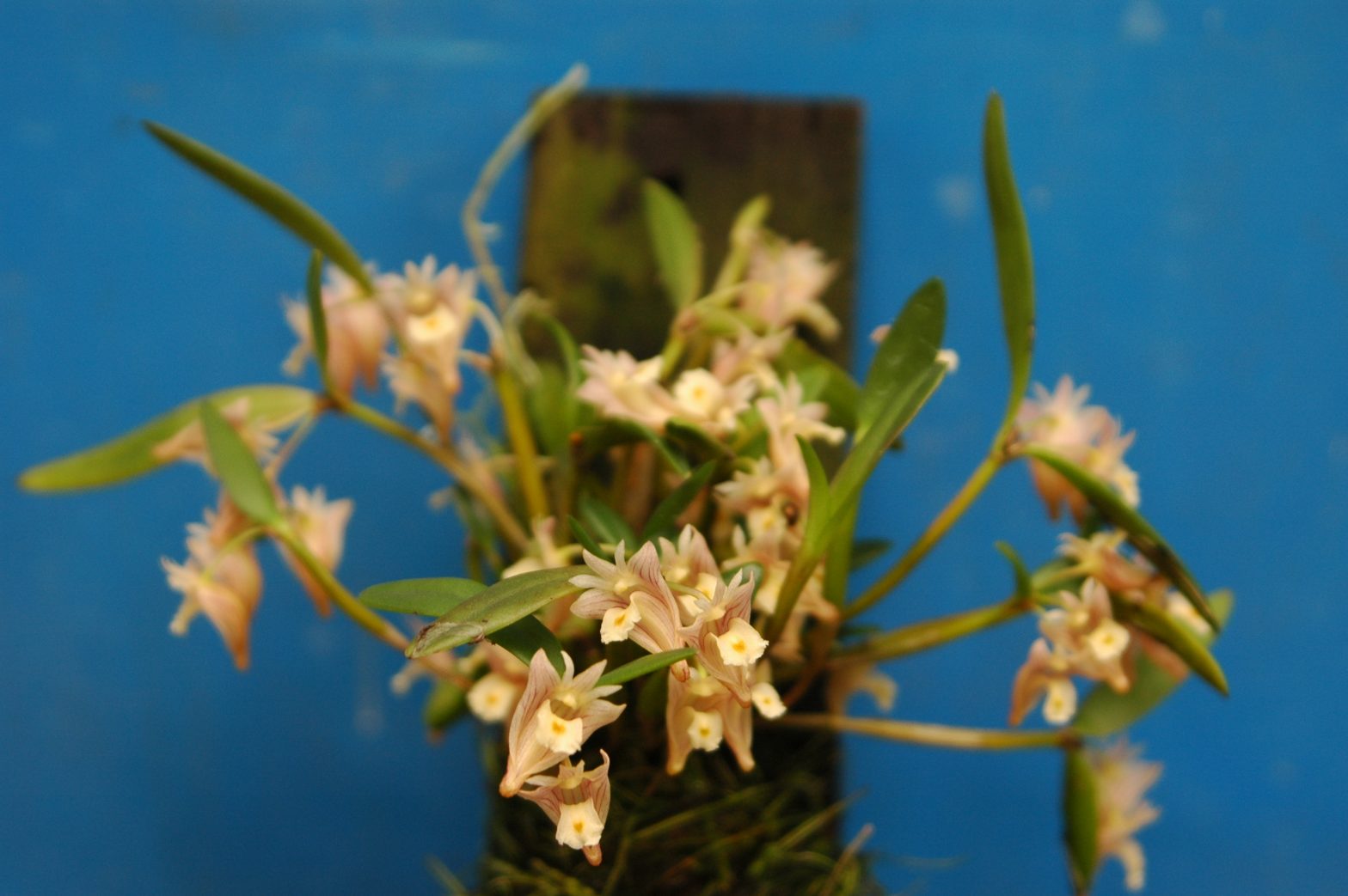 This large, warm-growing, pendant epiphyte is found in Assam, the eastern and western Himalayas, Nepal, Andaman Islands, Myanmar, Thailand, Laos, Yunnan (China), and Vietnam at 500 to 1000 meters on deciduous trees, requiring at least 3 hours of direct sunlight daily. It has clustered, ascending, prostrate, or pendulous sulcate stems covered in white sheaths. Blooming… Continue reading Dendrobium primulinum